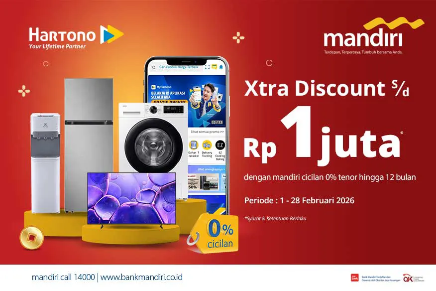 2. Promo berlaku khusus untuk transaksi secara online di www.myhartono.com dan MyHartono App.