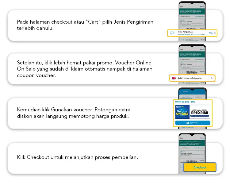 4. Cara menggunakan voucher Online On Sale di aplikasi MyHartono: