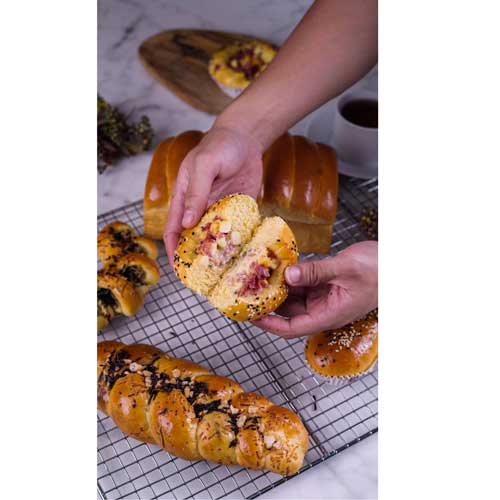 Roti Kuno Sisir Room Butter, Roti Sisir Roombutter, Roti Kuno Bakso Sapi, Roti Kuno Ham Keju, Flossy Roll Bread, Chicken Pandan Roll Bread