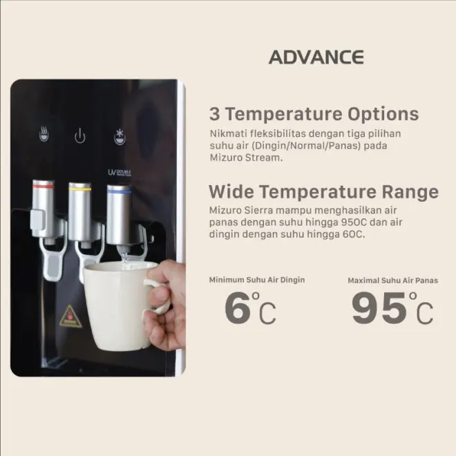• Mampu Menghasilkan air dingin dengan suhu hingga 6 drajat celcius