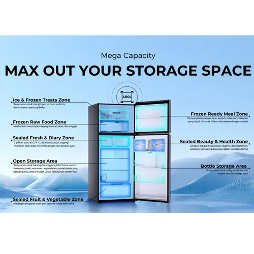 • Large Bottle Rack (menyimpan botol besar ukuran 2L)