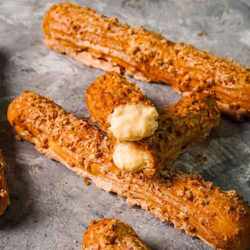 Japanese Pastry Choux with crunchy topping & melted pastry cream from the inside