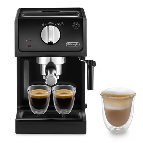 • Fitur tekanan 15 bar menciptakan espresso yang lezat dengan aroma yang kaya dengan krema berwarna kacang yang memikat pada lapisan atas.
