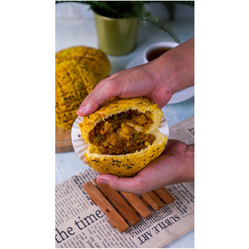 Pandan Kaya Pineapple Buns, Ayam Jamur Pineapple Buns, Chicken Curry Pineapple Buns