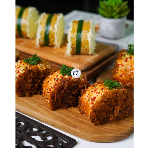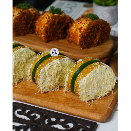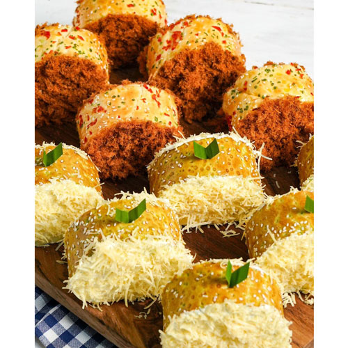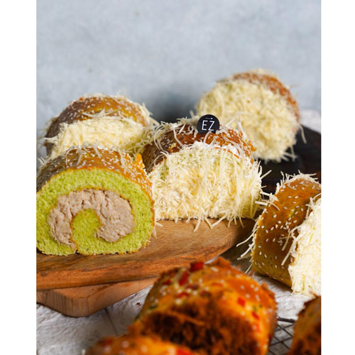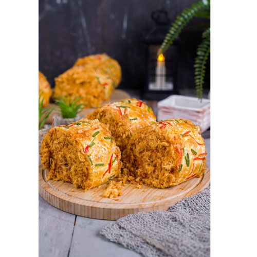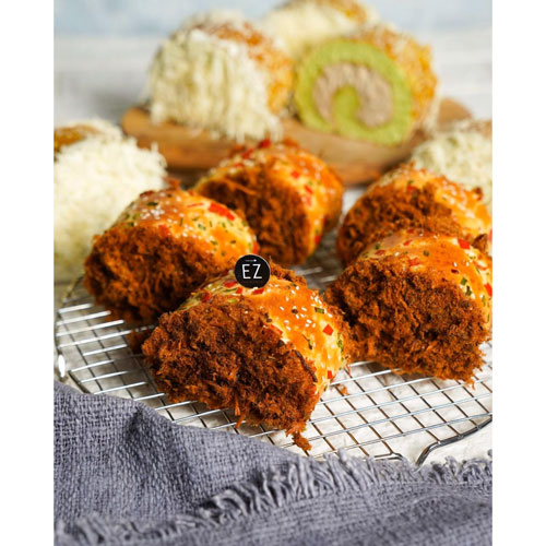 Flossy Roll Bread, Chicken Pandan Roll Bread