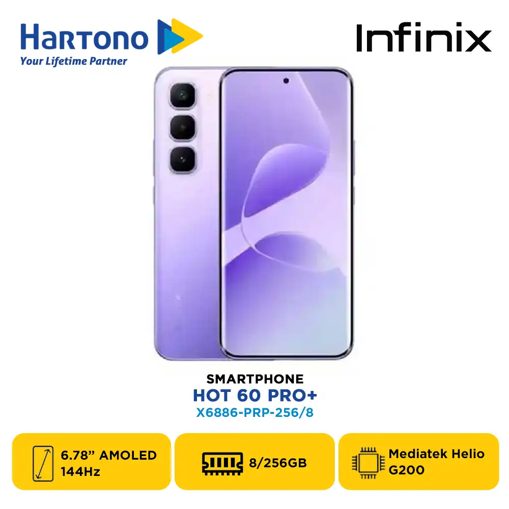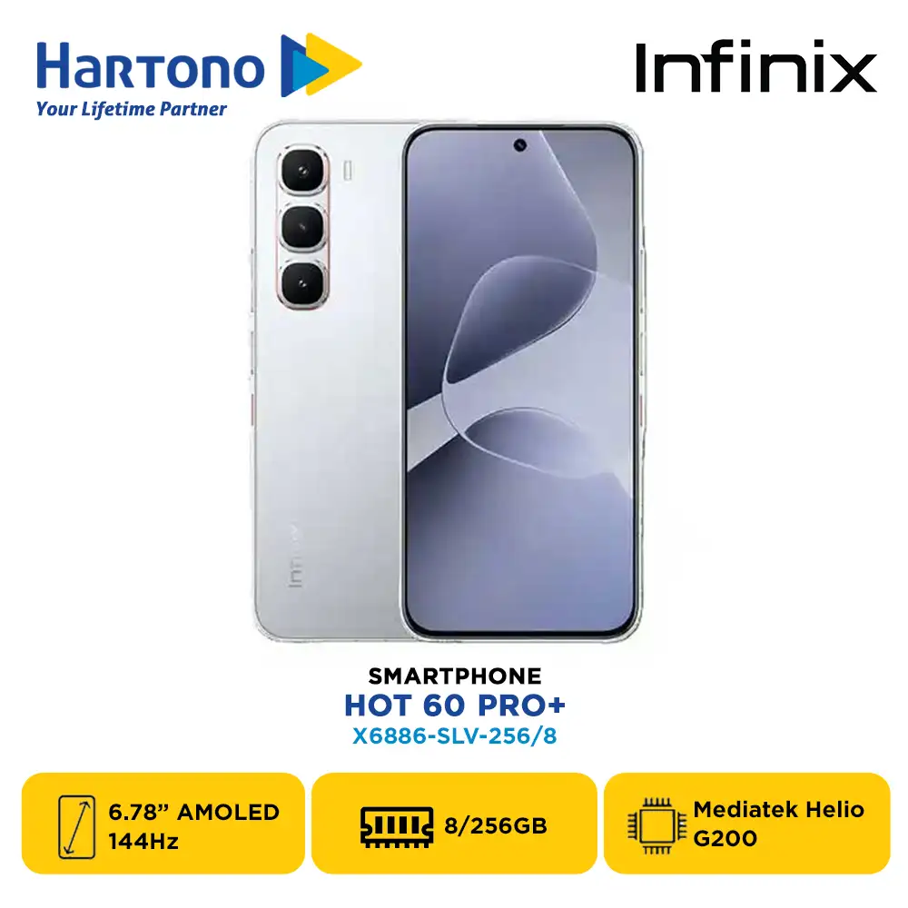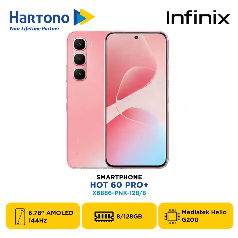 Infinix Hot 60 Pro+ Series, membawa teknologi mutakhir langsung ke genggaman Anda. Smartphone ini hadir dalam beberapa varian warna dan memori: Black 8/128GB (X6886-BLK-128/8), Pink 8/128GB (X6886-PNK-128/8), Silver 8/128GB (X6886-SLV-128/8), Black 8/256GB (X6886-BLK-256/8), Purple 8/256GB (X6886-PRP-256/8), Silver 8/256GB (X6886-SLV-256/8), Pink 8/256GB (X6886-PNK-256/8).
