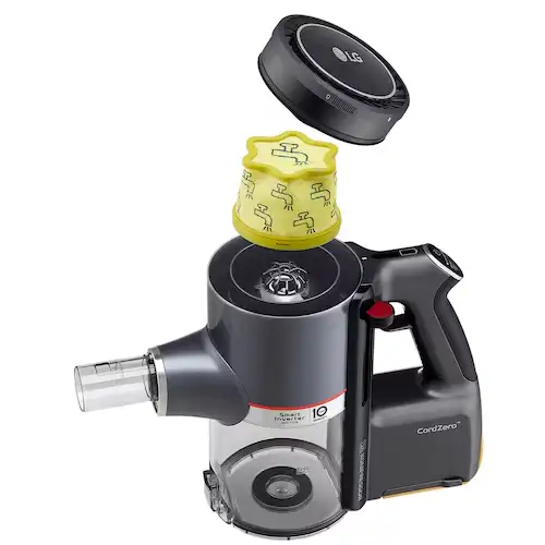 • Smart Inverter Motor™ tanpa sikat berputar dengan kecepatan tinggi untuk menghasilkan daya hisap kuat yang dapat mengangkat partikel kotoran dengan mudah.
