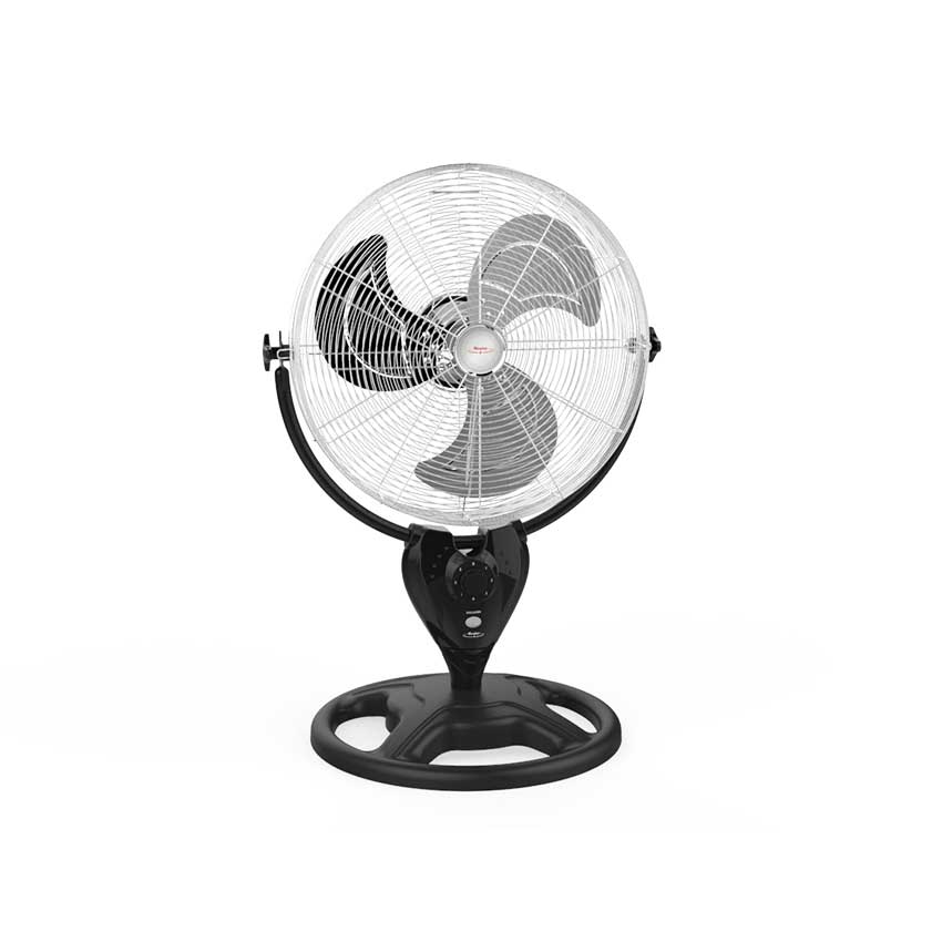 Kipas angin ini dapat diposisikan berdiri rendah atau ditinggikan.