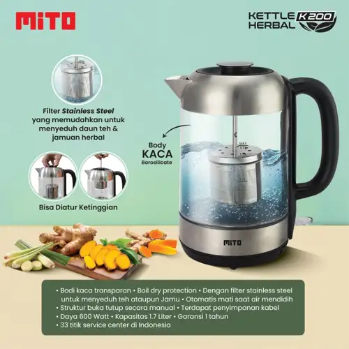 MITO TEKO LISTRIK ELECTRIC KETTLE K200-SILVER