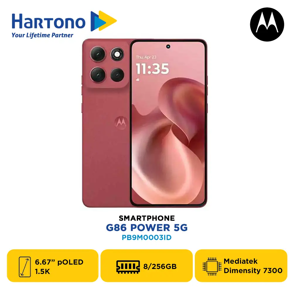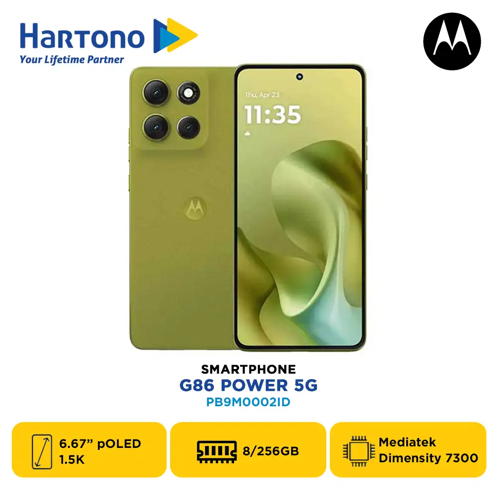 Motorola G86 POWER 5G Series, membawa teknologi mutakhir langsung ke genggaman Anda. Smartphone ini hadir dalam beberapa varian warna dan memori: SPELLBOUND 8/256GB (PB9M0000ID), COSMIC SKY 8/256GB (PB9M0001ID), GOLDEN CYPRESS 8/256GB (PB9M0002ID), CHRYSANTHEMUM 8/256GB (PB9M0003ID).