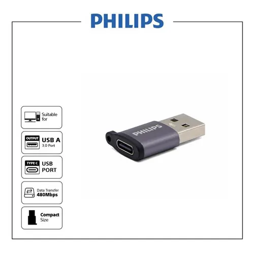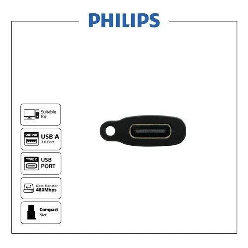 Philips Adaptor Converter USB 3.0 Male to USB Type-C Female PHILIPSSWA3070