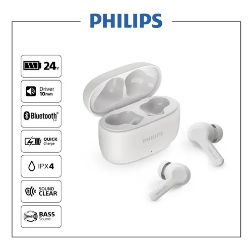 Philips TAT1109 (Seri 1000) adalah true-wireless earbud kecil yang nyaman dengan karakter suara hangat dan bass dinamis. Desain ringkas dan casing pengisian berukuran saku sangat cocok untuk penggunaan sehari-hari, saat bepergian, dan saat panggilan telepon. Memiliki varian warna Hitam (PHILIPSTAT1109BK) dan Putih (PHILIPSTAT1109WT).