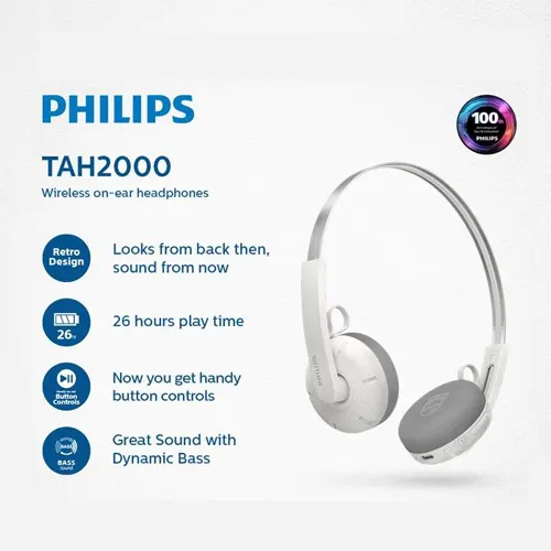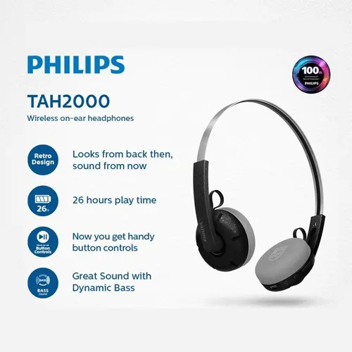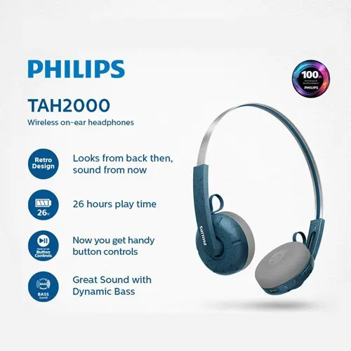 Headphone nirkabel on-ear dari seri 2000 ini menghadirkan gaya retro yang klasik dengan performa modern — cocok untuk pengguna yang ingin tampilan kasual namun tetap ingin kualitas suara baik dan konektivitas yang fleksibel. Desain ringan, bentuk on-ear yang ringkas, serta pilihan warna menarik membuatnya mudah dibawa dan cocok untuk keseharian. Memiliki variant warna Hitam (PHILIPSTAH2000BK), Biru/Toska (PHILIPSTAH2000TL) dan Putih (PHILIPSTAH2000WT)