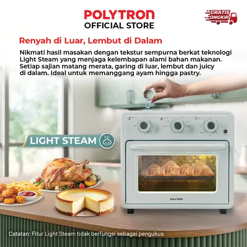 • Light Steam Technology untuk menghasilkan tekstur renyah di luar, lembut di dalam (Disclaimer: Fitur Light Steam tidak dapat mengukus, fungsinya untuk menyempurnakan tekstur dan menjaga makanan lebih moist/lembab)