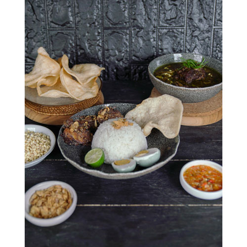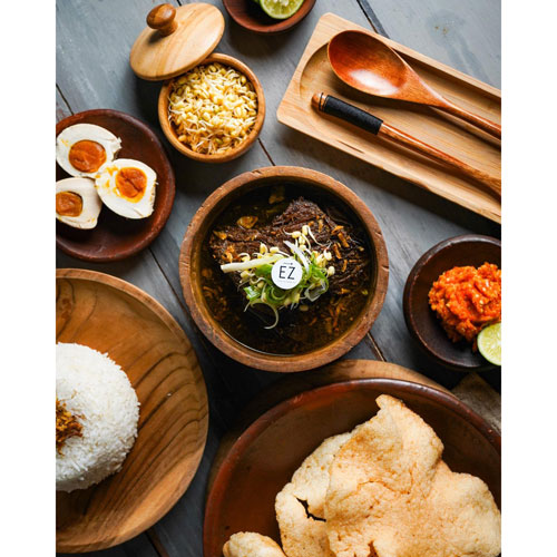 Rawon Daging, empal goreng & telur asin