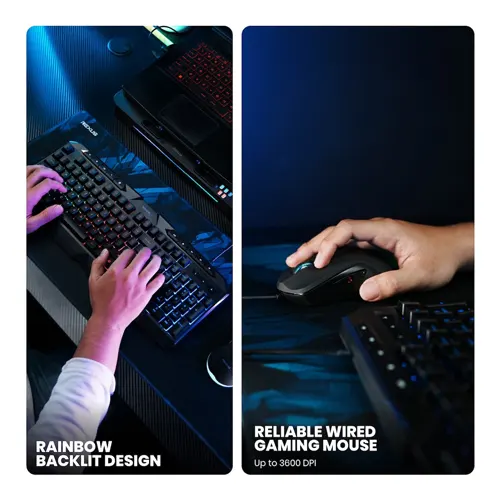 • Rexus 3-in-1 RGB Gaming Combo Kit merupakan paket perlengkapan gaming lengkap yang terdiri dari keyboard, mouse, dan mousepad dengan pencahayaan RGB yang dinamis.