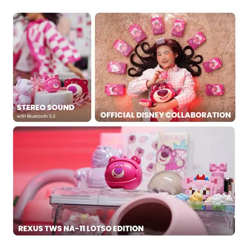 Siap untuk sentuhan manis dalam keseharian Anda? Perkenalkan Rexus TWS NA-11 Lotso Edition, kolaborasi resmi dengan Disney yang menghadirkan pengalaman audio premium dan desain menggemaskan. Nikmati suara Stereo Sound yang jernih dengan Bluetooth 5.3 yang stabil. Kontrol musik dan panggilan menjadi mudah dengan Touch Sensitive Control, sementara pengisian daya 1 jam memberi Anda 4-6 jam waktu putar. Dengan fitur HD Fidelity Call dan desain roll-to-open yang unik, TWS ini bukan hanya alat, melainkan teman setia yang penuh gaya.