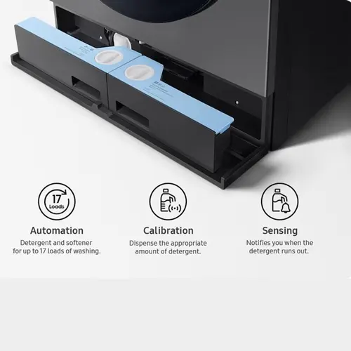• AI Wash & Dry: senses the weight of the laundry and uses the right amount of water and detergent