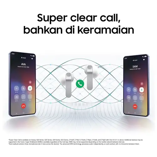 • Samsung Buds4 dengan suara yang jernih: Powerful 11 mm wide-range speaker, fitur Active noise cancelling, dan super clear call.