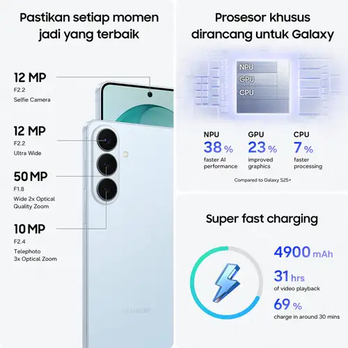 | Fitur | Battery 4900 mAh Super Fast Charging 45W |
