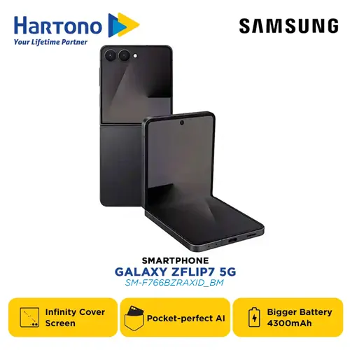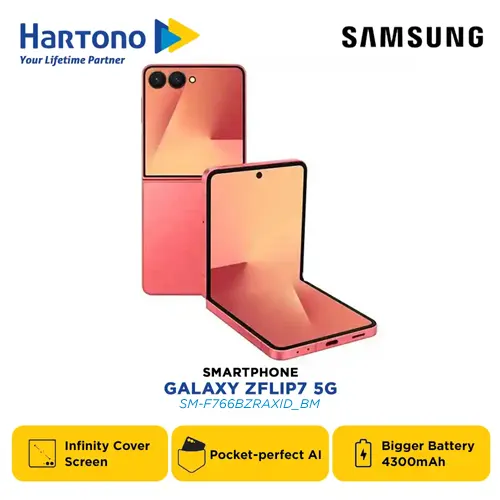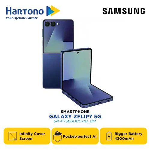 Samsung Galaxy ZFlip7 5G Series, membawa teknologi mutakhir langsung ke genggaman Anda. Smartphone ini hadir dalam beberapa varian warna dan memori: Blue 12/256GB (SM-F766BDBAXID), Black 12/256GB (SM-F766BZKAXID), Red 12/256GB (SM-F766BZRAXID), Blue 12/512GB (SM-F766BDBEXID), Black 12/512GB (SM-F766BZKEXID), Red 12/512GB (SM-F766BZREXID).