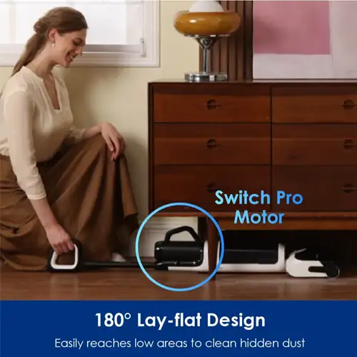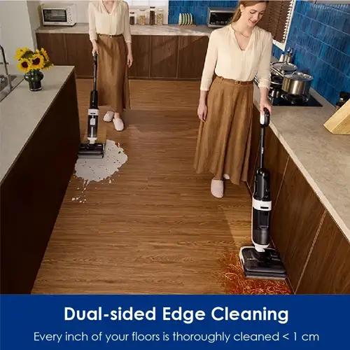 • Dual-Sided Edge Cleaning: Kepala sikat yang didesain untuk membersihkan sepanjang tepi dan sudut-sudut yang sulit dijangkau di kedua sisi sehingga tidak ada lagi tempat yang terlewat saat membersihkan rumah.