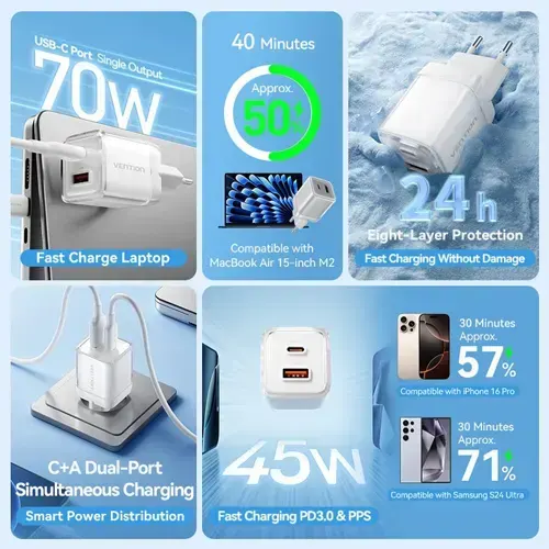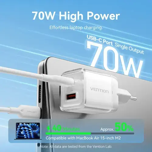 • Output USB-C : 5V=3A, 9V=3A, 10V=2A, 12V=3A, 15V=3A, 20V=3.5A 70W Max
