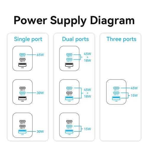 • Output (USB-C 2) : 3A=5V,9V | 2.5A=12V | 2A=15V | 1.5A=20V