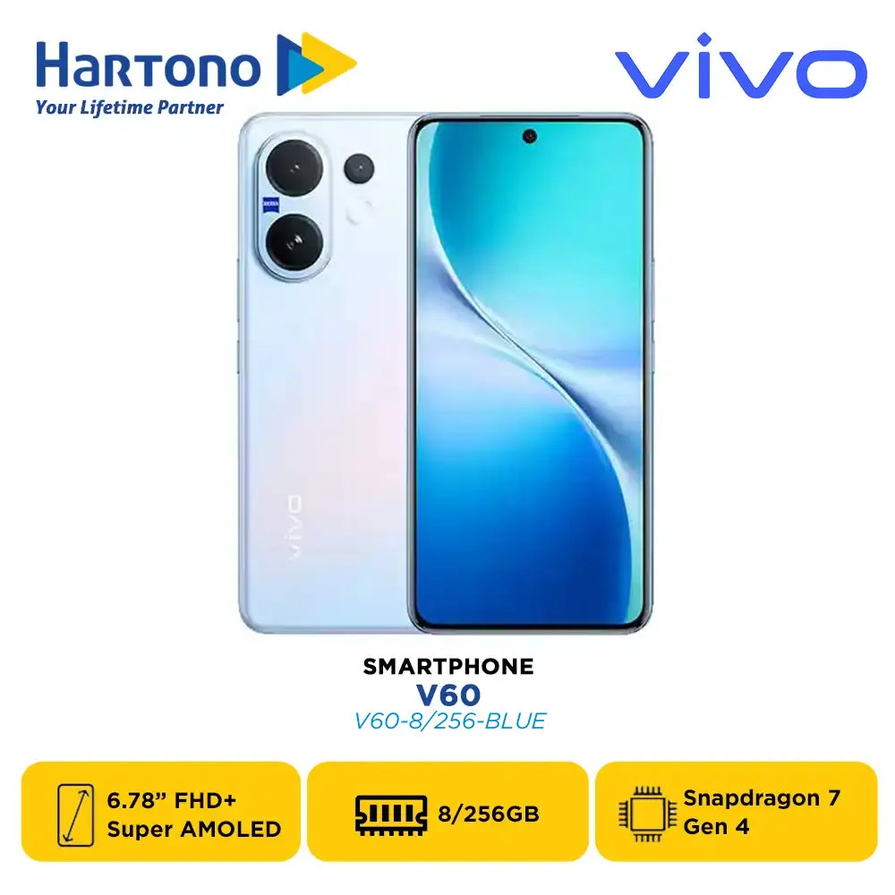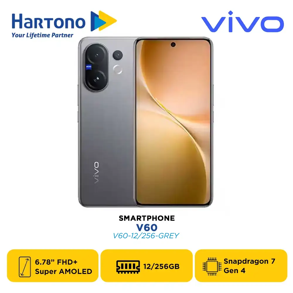 Vivo V60, membawa teknologi mutakhir langsung ke genggaman Anda. Smartphone ini hadir dalam beberapa varian warna dan memori: Biru 8/256B (V60_8/256_BLUE), Ungu 8/256GB (V60_8/256_PURPLE), Abu-abu 8/256GB (V60_8/256_GREY), Ungu 12/256GB (V60_12/256_PURPLE), Abu-abu 12/256GB (V60_12/256_GREY), Ungu 12/512GB (V60_12/512_PURPLE), Abu-abu 12/512GB (V60_12/512_GREY).