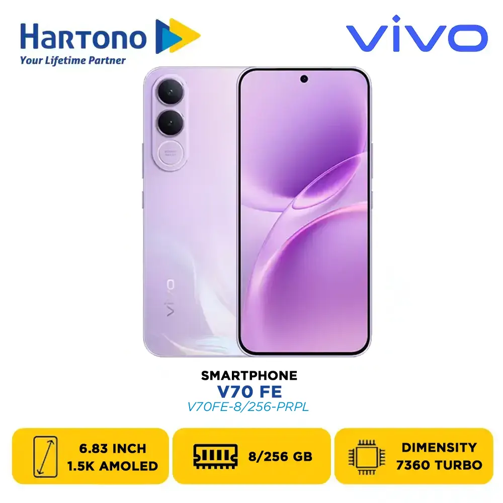 Vivo V70 FE, membawa teknologi mutakhir langsung ke genggaman Anda. Smartphone ini hadir dalam beberapa varian warna dan memori: Ocean Blue 8/256GB (V70FE-8/256-BLUE), Muse Purple 8/256GB (V70FE-8/256-PRPL), Titanium Silver 8/256GB (V70FE-8/256-SLVR), Ocean Blue 12/256GB (V70FE-12/256-BLUE), Muse Purple 12/256GB (V70FE-12/256-PRPL), Titanium Silver 12/256GB (V70FE-12/256-SLVR).