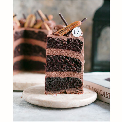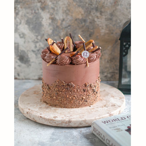 Chocolate pie cake, dark choco banana mousse, covered with chocolate buttercream